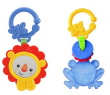 Un surtido de dos sonajeros formado por una ranita mordedor y un león con un espejo.