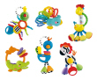 Siete juguetes divierten al bebé y contribuyen a su desrrollo. El surtido incluye:gusanito,pajarito,cebra musical, mariposa estímulos y juego,selva activity, cocodrilo aros c