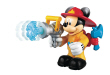 ¡El bombero Mickey, que mide 23 cm, está preparado para cualquier emergencia! Mickey cuenta con una manguera y un equipo antiincendios. Al pulsar la palanca de la manguera, es